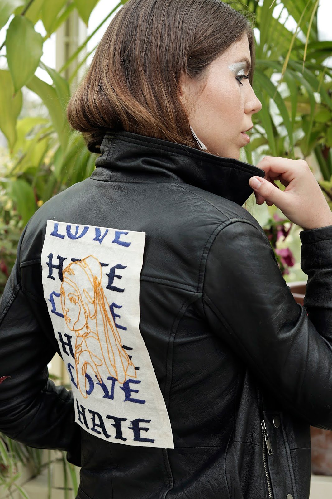 She received a BA in textiles from The National College of Art and Design in Dublin. After graduation, she says she "began to realize the corruption that goes on in the world concerning all of our clothes and I know from then I wanted to work against the fast fashion industry!" Her mission is to prevent plastic in costume jewelry from ending up in landfills and oceans, sourcing broken jewelry from charity/second hand shops or donation, and upcycling clothing with embroidery or embellishment. The final result being a unique, functional art piece made from something broken and unwanted.