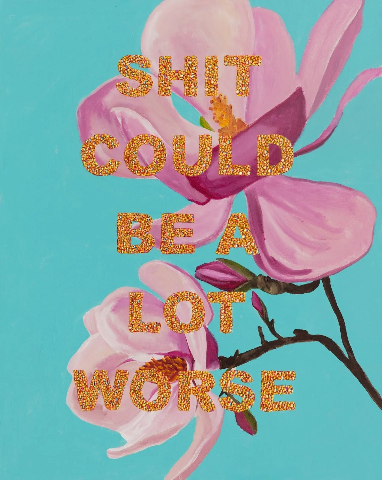 The New York Times hails: Ashley Longshore is Fashion’s latest art darling. Her glittery, bawdy feminist work makes noise and her business model disrupts the art world. Ms. Longshore’s sparkly rings and Christian Louboutin shoes add some “lady” to her look, a brash hybrid of hip hop star and high gypsy priestess. Linda Fargo says, “I think what's so appealing about Ashley's voice and imagery is that it's outspoken, humorous and glamorous all at the same time. Her palette is loaded with paint, makeup, glitter, body politics and witticisms you wish you had thought of!" Ashley professes on the regular: “I’m brave enough to be who I am in a society where there’s a lot of pressure to be perfect. I can only be me and I encourage YOU to be YOU.”