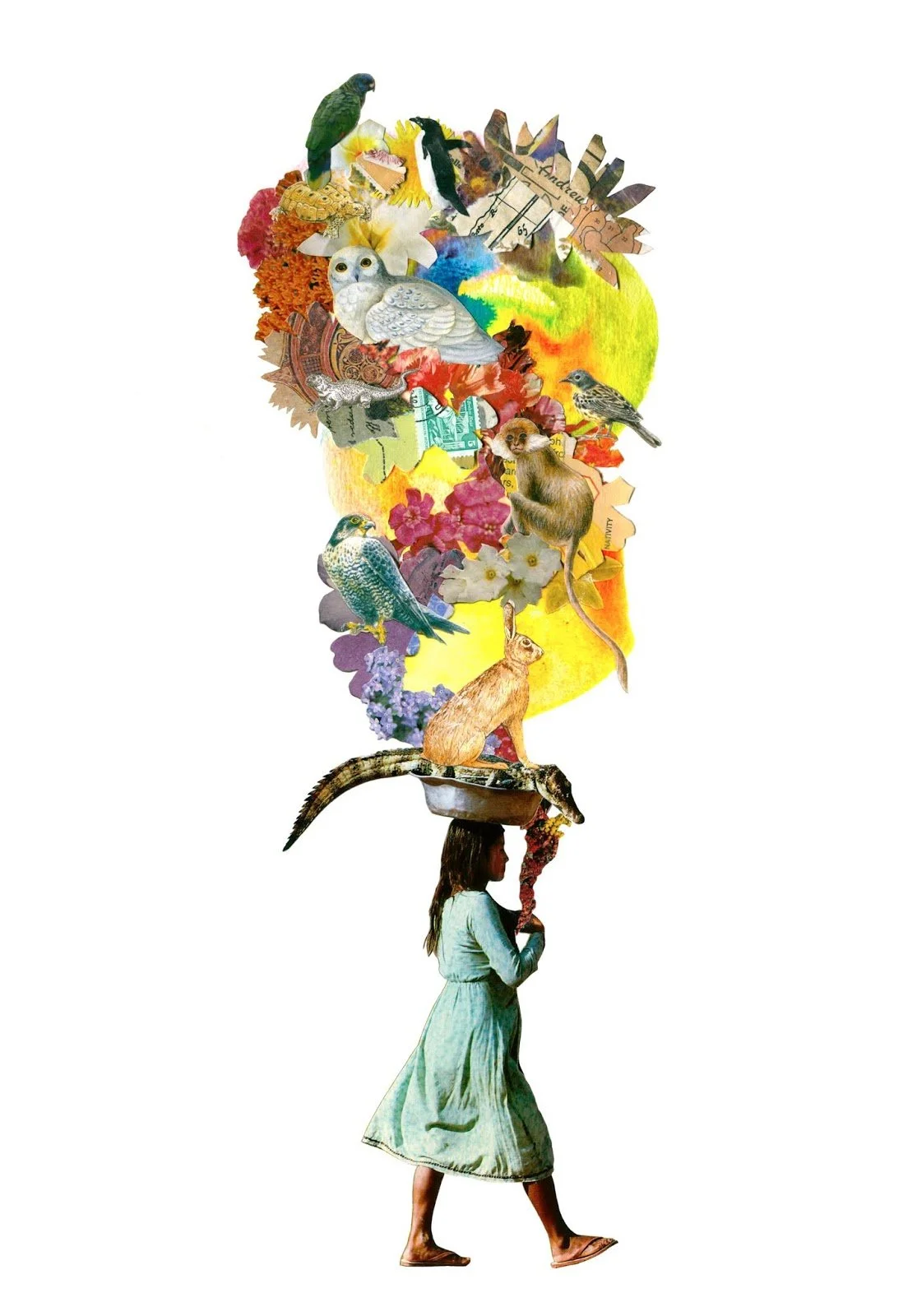 Rosie Schinners is a collage artist who resides on Salt Spring Island, British Columbia, Canada. She holds a Bachelor of Art from the University of Guelph as well as a Bachelor of Fine Art from the Nova Scotia College of Art and Design. Although focusing on painting during her formal art education, returning to collage art as a primary medium was a natural transition. From a young age, she has been cutting, pasting, and leaving trails of scrap paper around the house.