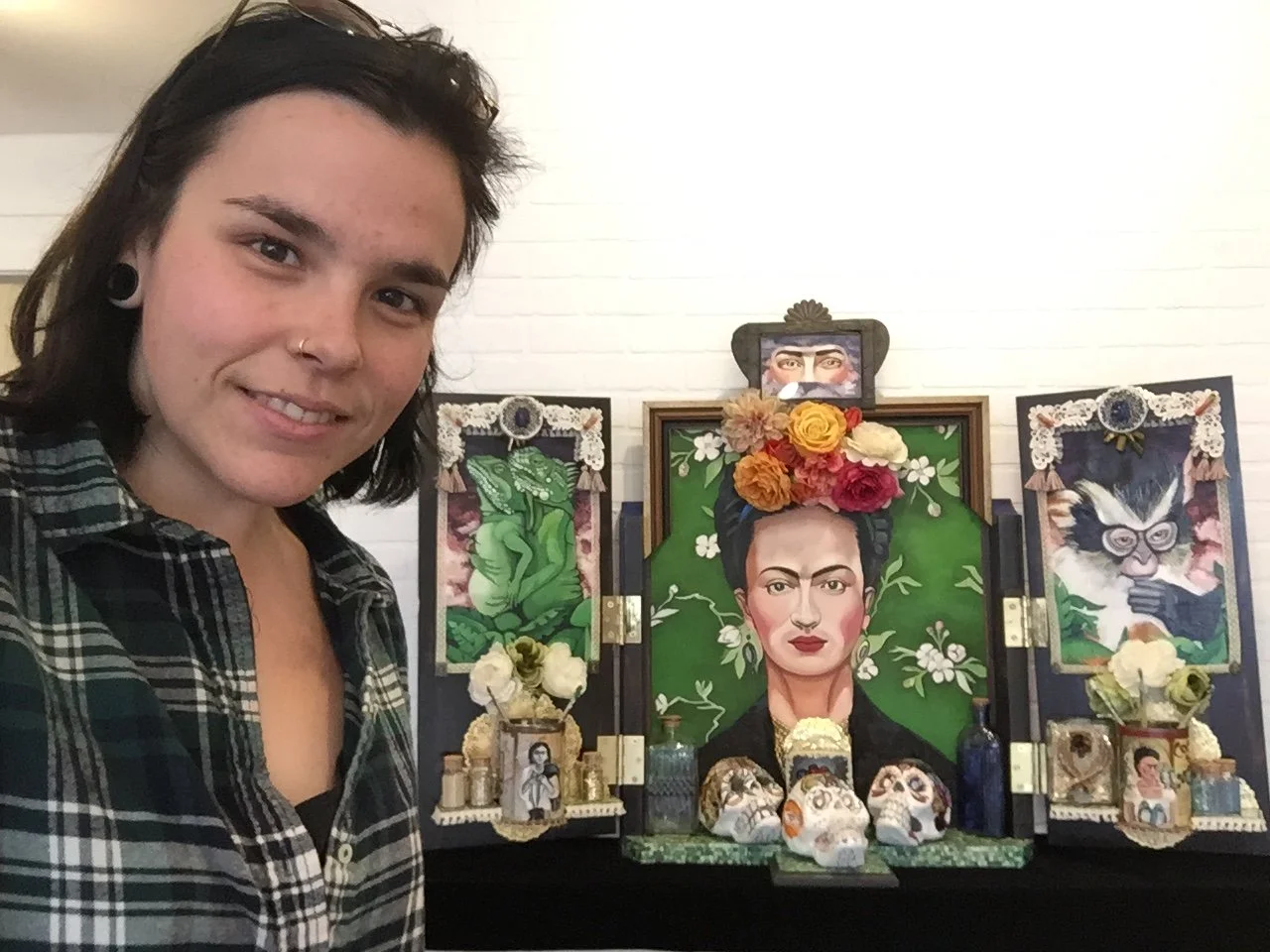 I constantly collect materials I like, it's a joyful hobby to visit swap meets, salvage yards, free piles and more to see what treasures I can find. It wasn't until I started using oil paints and studying Frida Kahlo that it all came together and I knew what these collected materials would be used for. It was a very organic progress.