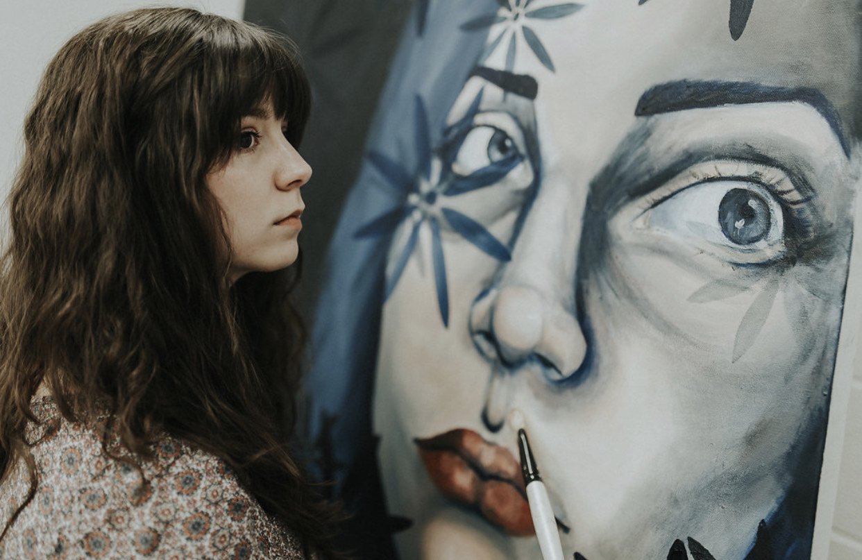 We are so exited to share the cold colors and striking portraits from Syndey Herndon! Combining traditional oil paint techniques and digital painting, she creates work exploring Sydney women’s state of mind in an ever changing society.
